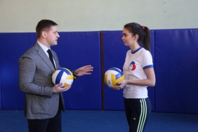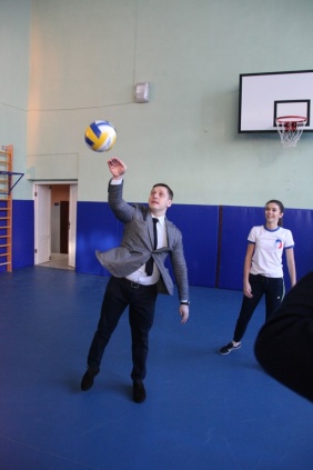 Куратор проекта «Детский спорт» Денис Лапотышкин посетил отремонтированный спортивный зал Полетаевской средней школы