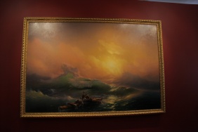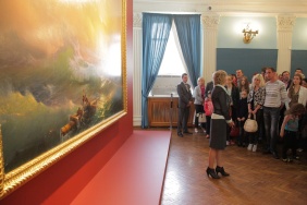 Председатель Законодательного Собрания Владимир Мякуш посетил открытие выставки из цикла "Шедевры Росского музея" в Сатке. На выставке представлена картина 'Девятый вал" И. Айвазовского