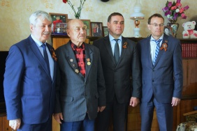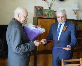 Председатель Законодательного Собрания Владимир Мякуш поздравил ветерана Великой Отечественной войны Степана Ивановича Хлебутина с приближающимся Днем Победы