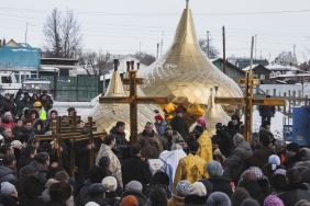 В первый день весны, 1 марта, Владимир Мякуш побывал в поселке Полетаево Сосновского района Челябинской области, где состоялось поднятие куполов на Храм Покрова Пресвятой Богородицы