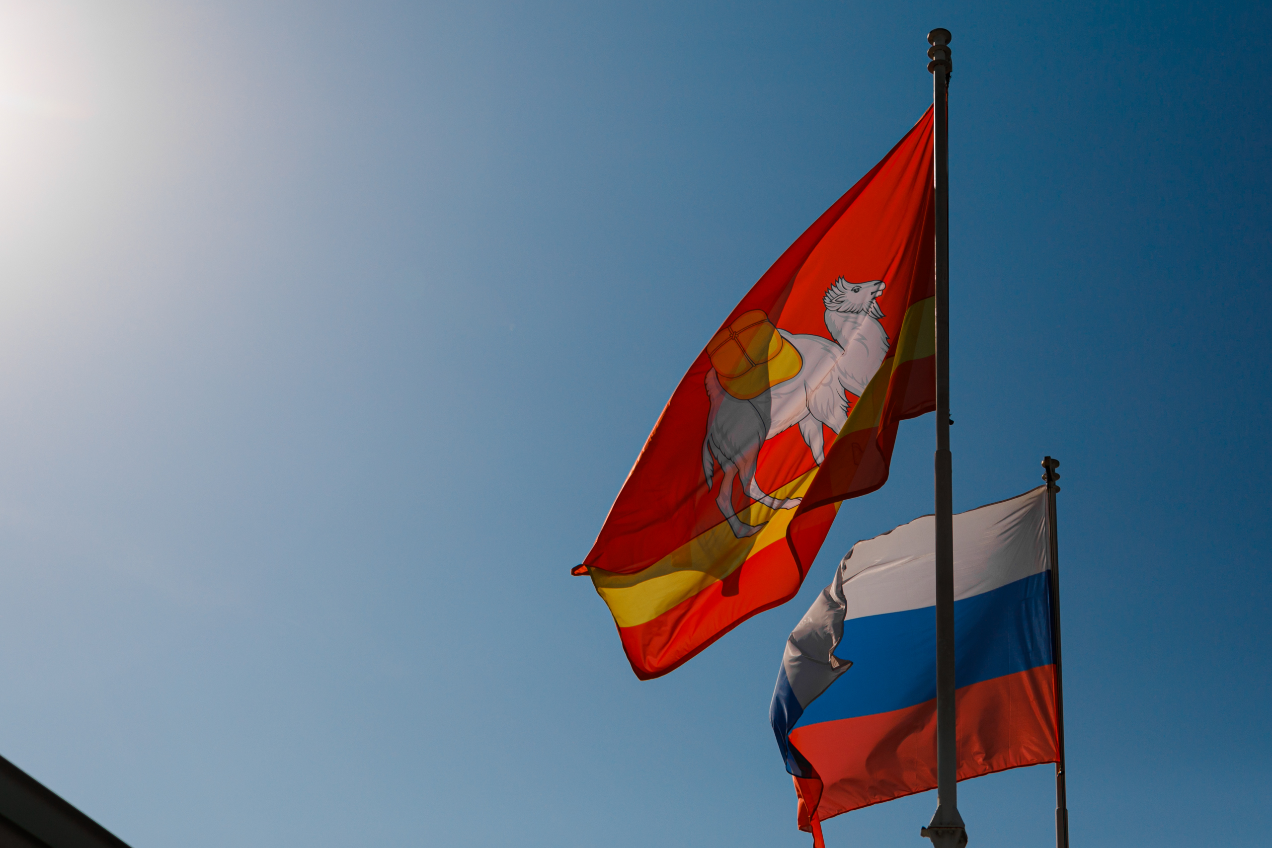 В канун Дня Государственного флага РФ фотокорреспонденты Вадим Ахметов (URA.RU) и Олег Татаркин (Законодательное Собрание) поднялись на крышу здания Законодательного Собрания, на то самое место, с которого Алексей Гольянов сделал фотографию 26 августа 1991 года. С этого дня российский флаг развевается над зданием по Кирова, 114.