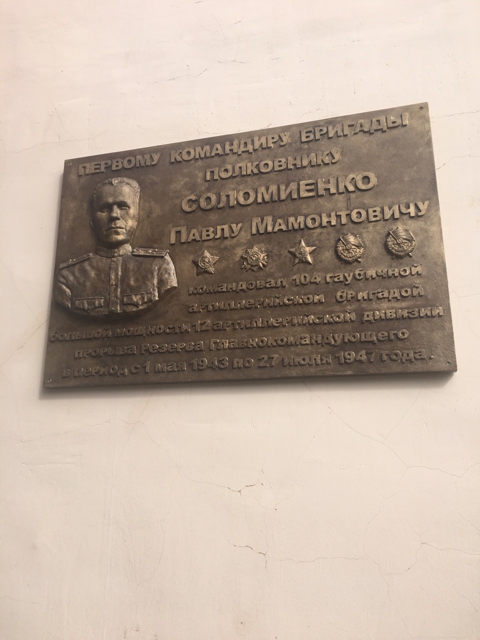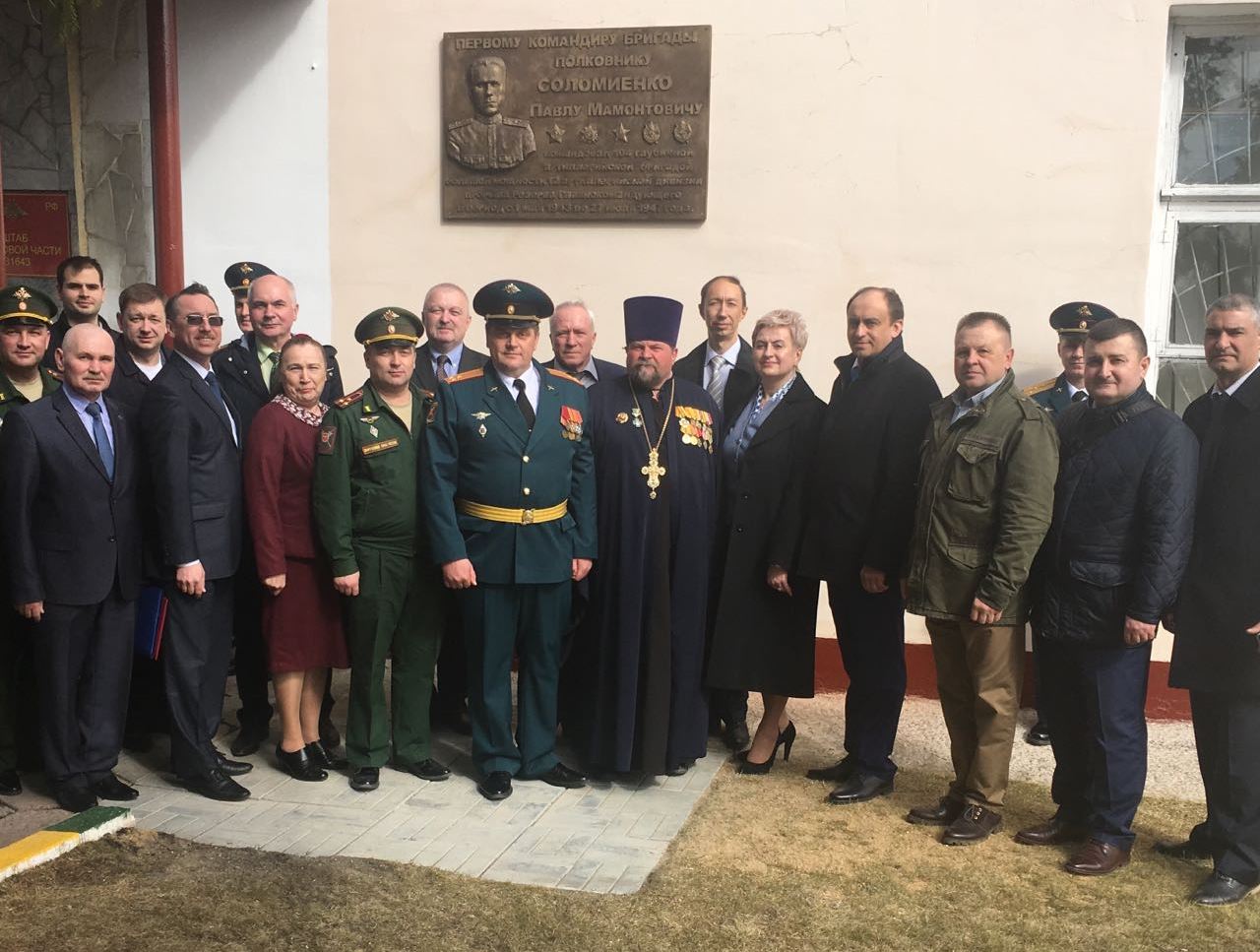В Щучанском гарнизоне состоялись торжественные мероприятия, посвященные 75-летию со дня создания прославленного артиллерийского соединения Центрального военного округа. В них приняли участие шефские делегации из Курганской, Челябинской и Иркутской областей, а также Ямало-Ненецкого автономного округа. Праздник открылся митингом в честь открытия мемориальной доски первому командиру бригады полковнику Павлу Соломиенко, которую по заказу Фонда Патриотического воспитания и военно-шефской деятельности создал известный уфимский скульптор, давний соратник Совета шефов воинских частей Олег Собинов. Автор нескольких десятков бюстов Героев ратного и мирного труда, он с фотографической точностью воспроизвел портретный барельеф боевого офицера.