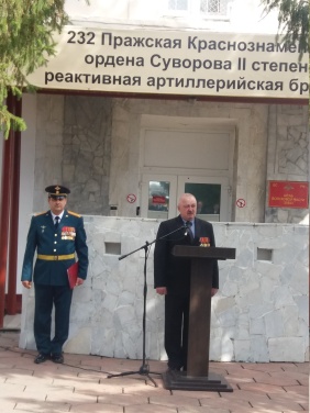 На торжественном открытии мемориальной доски выступили командир соединения полковник Олег Серкез, председатель Совета шефов воинских частей Игорь Михайлов, ветеран государственной службы, кавалер ордена Мужества Сергей Балдин. Торжественным маршем перед штабом соединения прошли воины-артиллеристы.