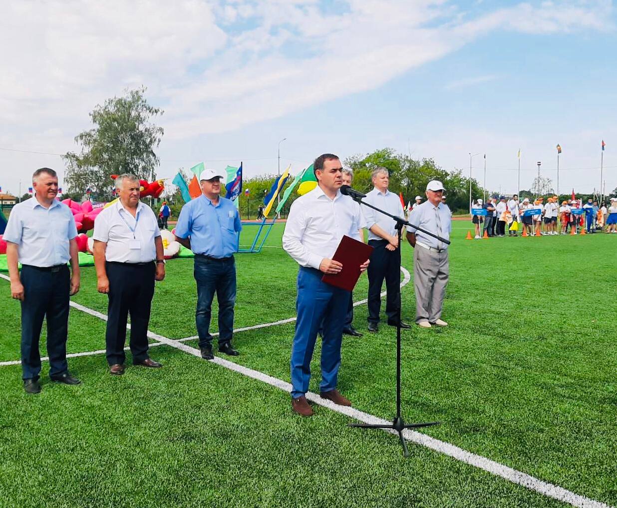 Торжественное открытие сельской спартакиады прошло на новом стадионе «Метеор», который принял первых спортсменов в сентябре прошлого года. Стадион построен благодаря реализации национального проекта «Демография», по программе Министерства спорта Челябинской области «Развитие физической культуры и спорта в Челябинской области». Работы завершены в рамках подготовки к проведению сорок третьих Областных летних спортивных игр «Золотой колос».