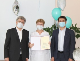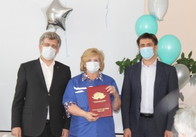 Главный врач Александр Локтев вручил награды Чебаркульской областной больницы, а также грамоты и благодарственные письма И.о. главы Чебаркульского городского округа Светланы Виноградовой, главы Чебаркульского муниципального района Александра Короля, а также председателей Собрания депутатов Сергея Старостина и Андрея Завьялова.