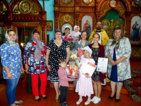 За достойный пример в воспитании детей, укрепление семьи и брака, сохранение православных традиций и семейных ценностей в день памяти небесных покровителей, защитников семьи святых благоверных князя Петра и его супруги Февронии Муромских Благодарственное письмо и подарок от депутата Законодательного Собрания Челябинской области Андрея Самсонова протоиерею Святославу и матушке Ольги Соболькиным вручила помощник депутата Ольга Книжникова. К поздравлениям присоединились представители администрации Клястицкого сельского поселения и руководитель депутатского центра Троицкого районного МО ВПП «ЕДИНАЯ РОССИЯ» Ольга Макиенко.
