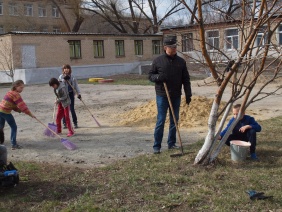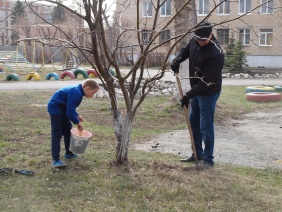 На этой неделе ребята вместе с шефом дружно вышли на весенний субботник, разобрали грабли, метелки, мешки под мусор и приступили к работе. Чистили, скребли, выметали старые листья, мусор, оформляли деревья, кустарники, подбеливали их известкой. Каждый старался быть рядом со своим взрослым шефом и помочь ему.