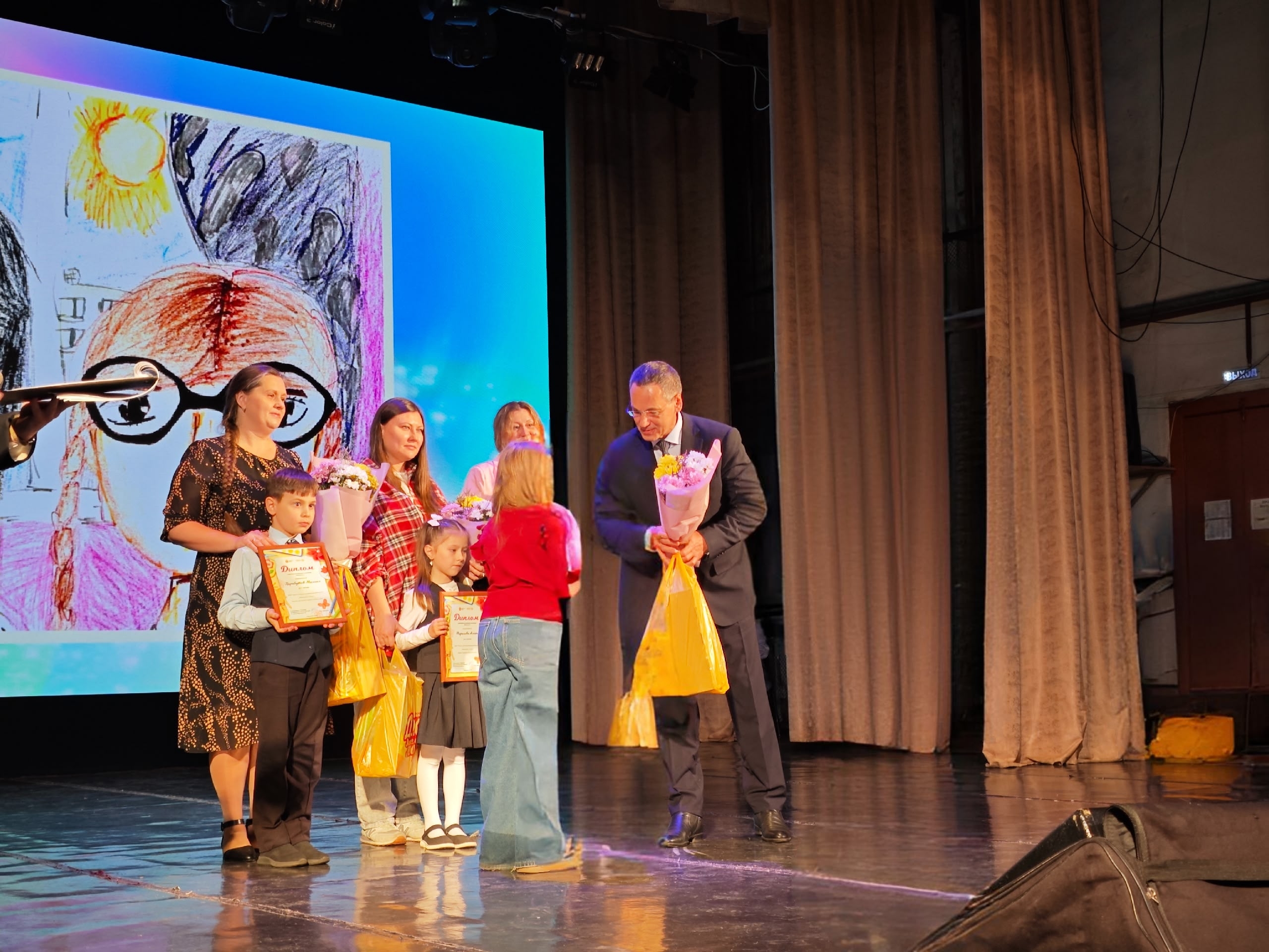 «Работы были очень талантливо выполнены, жюри сложно было определить лучшие из них. В преддверии Дня матери на торжественном мероприятии подвел итоги творческого конкурса рисунков «Мама и я» и вручил победителям и их мамам небольшие подарки и билеты в кино. Помимо победителей каждый участник также получит диплом и поощрительные призы.