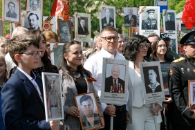 В рядах Бессмертного полка в столице Южного Урала прошли депутаты областного парламента Алексей Денисенко, Дмитрий Клеутин, Александр Мотовилов, Александр Шестаков, Евгений Рева.