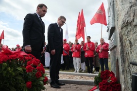 В церемонии открытия стелы приняли участие губернаторы Челябинской и Ленинградской областей Алексей Текслер и Александр Дрозденко, председатели законодательных собраний регионов Александр Лазарев и Сергей Бебенин, сенатор от Челябинской области Маргарита Павлова, депутат Государственной Думы Дмитрий Вяткин.