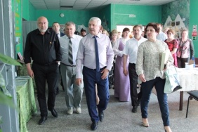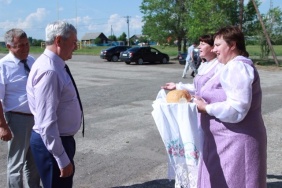 Сотрудницы Дома культуры встретили Владимира Мякуша, депутатов Владимира Горнова и Марину Поддубную, согласно русскому обычаю, хлебом-солью и провели экскурсию по учреждению.