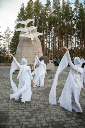 Новый сквер преобразился и стал комфортным не только для прогулок и отдыха. Здесь предусмотрены площадки для проведения различных мероприятий и лекториев. Центральным элементом сквера стала скульптура в виде летящих белых журавлей.