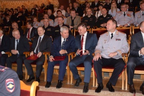 «Вот уже 100 лет вы держите курс на соблюдение законности в нашей стране. Сотрудников органов внутренних дел всегда отличают доблесть, самоотдача, готовность прийти на помощь. Свои лучшие качества вы проявляете в повседневной работе, от ваших действий зависит спокойствие и безопасность в обществе. Вы сами создаете свою судьбу, умеете держать удар и не боитесь брать ответственность на себя, а вашим путеводным ориентиром является долг перед своими земляками и государством, дав присягу быть бдительными, мужественными и честными при исполнении служебных обязанностей», - обратился к присутствующим председатель Законодательного Собрания Владимир Мякуш.