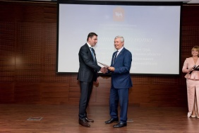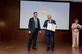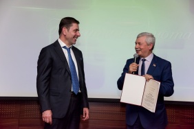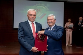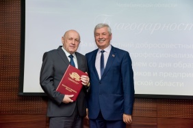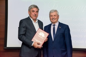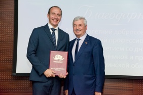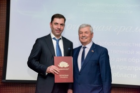 Владимир Мякуш наградил председателя совета директоров ПАО «Магнитогорский металлургический комбинат», депутата Законодательного Собрания I–V созывов, президента Союза Виктора Рашникова высшей наградой областного парламента – медалью Законодательного Собрания Челябинской области «За заслуги в законотворческой деятельности».