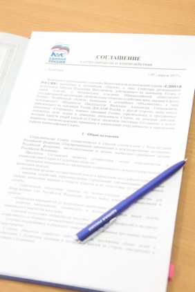 Подписание соглашения о взаимодействии и сотрудничестве состоялось сегодня в Челябинске на территории отделения ДОСААФ. Процедура подписания прошла в рамках четвертого пленума Совета регионального отделения ДОСААФ. Челябинское региональное отделение партии «Единая Россия» на мероприятии представил Секретарь Владимир Мякуш.